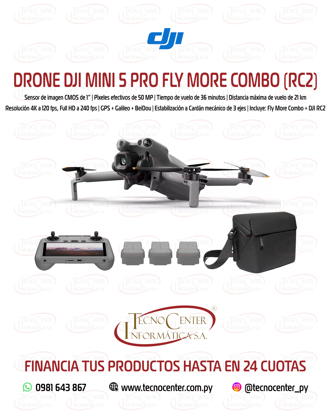 Ligero, portátil y super profesional. Drone DJI Mini 5 Pro Fly More Combo (RC2). Adquirilo en cuotas de Gs. 795.000. Whatsapp Directo 📲 0981643867.